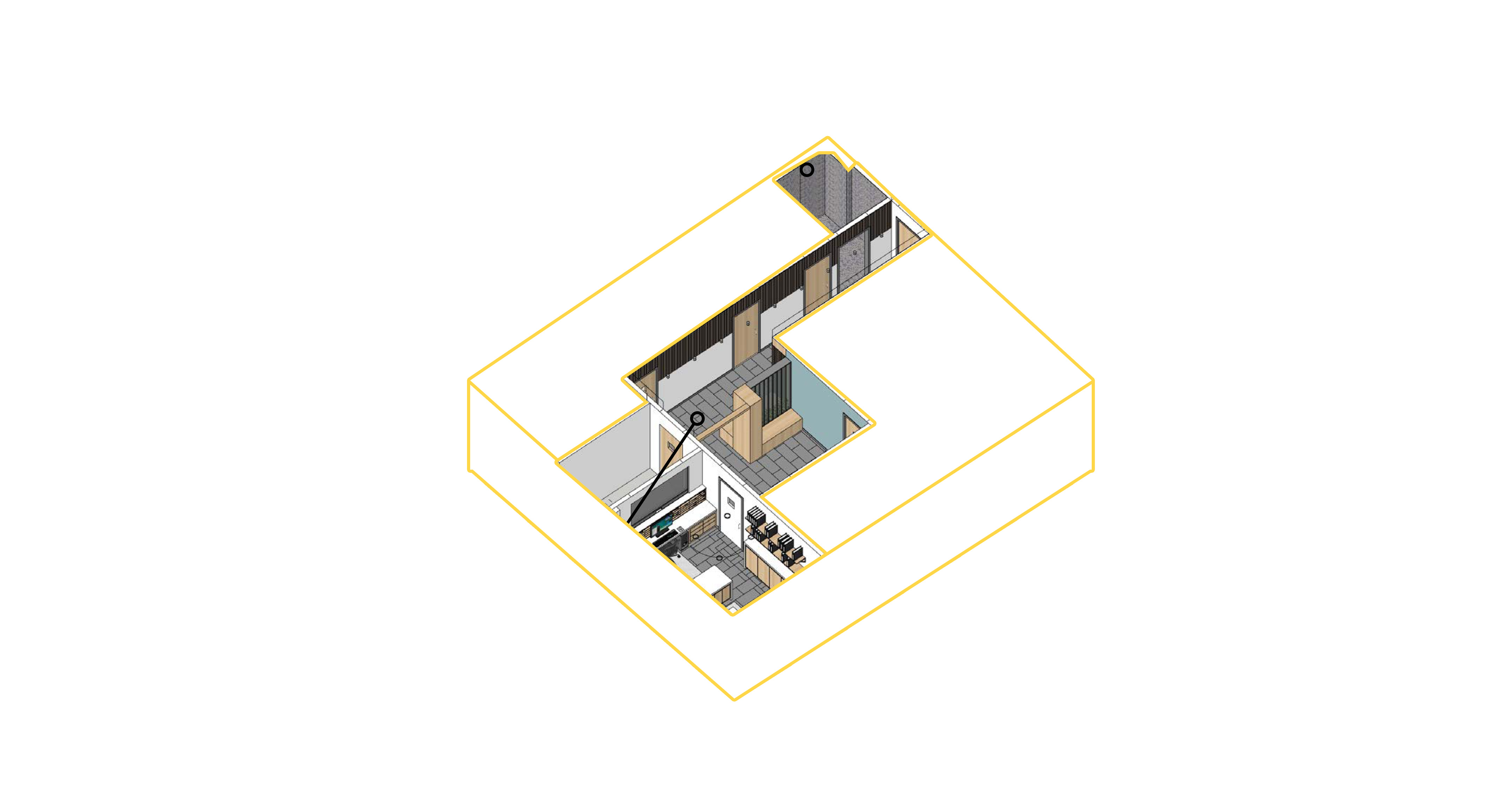 At the entry, a new vestibule establishes a controlled point of arrival. This waiting area provides organized space for case workers, parents, and visitors. Within the unit, safety and comfort guide the design. Patient bedrooms are intentionally windowless to reduce risk yet carefully detailed to avoid feeling clinical or institutional. All furnishings are either built-in or designed to be unbreakable, offering secure spaces to sit and store personal items while ensuring the safety of both patients and staff.
